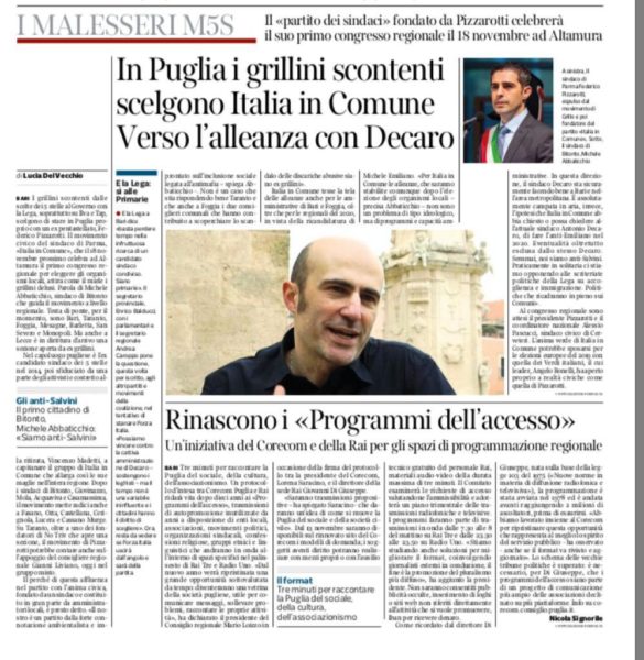 I democratici, che hanno incoraggiato e coccolato Pizzarotti e se lo sono tirati in casa, oggi vedono i loro spazi minacciati o occupati non più solo dal M5S e dalla Lega, ma anche da Italia in Comune. Alle prossime elezioni regionali il sindaco di Cagliari Massimo Zedda si candiderà a presidente della Sardegna per il centrosinistra sotto le insegne di Italia in Comune… ciò significa che i democratici, già deboli sull’isola, saranno azzerati. Il Pd ricorda Erisittone, personaggio della mitologia greca, che finì per divorare se stesso.