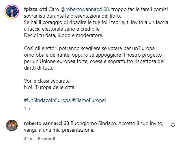 E’ botta e risposta su X tra Federico Pizzarotti (candidato alle europee per Azione) e il generale Roberto Vannacci (candidato alle europee con la Lega).