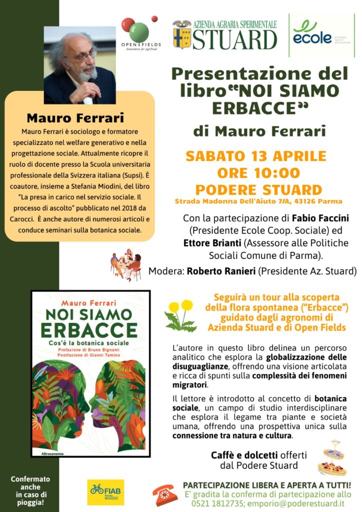 Podere Stuard: il 13 aprile il sociologo e formatore Mauro Ferrari presenta il libro “Noi siamo Erbacce”