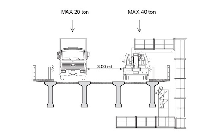 Nella foto: una delle principali attrezzature necessarie all’intervento sul ponte di Casalmaggiore per la tratta sull’alveo fluviale (dal progetto)