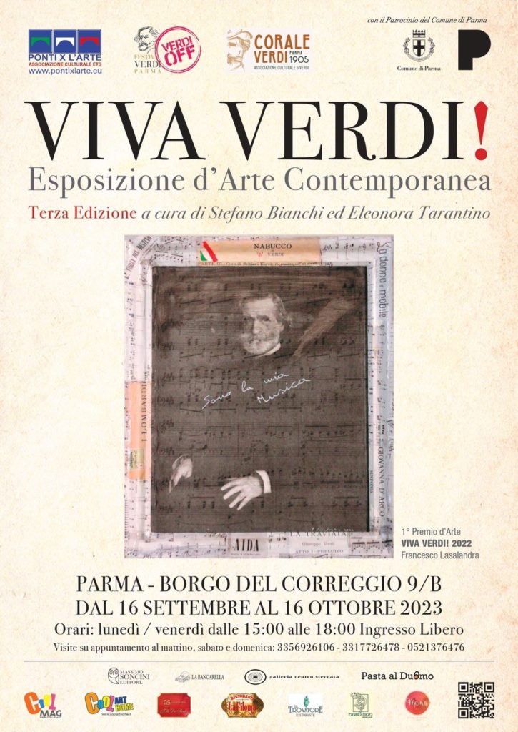 VIVA VERDI! 3a Edizione, a cura di Stefano Bianchi ed Eleonora Tarantino, a Parma dal 16 Settembre al 16 Ottobre 2023 in borgo del Correggio 9/B.