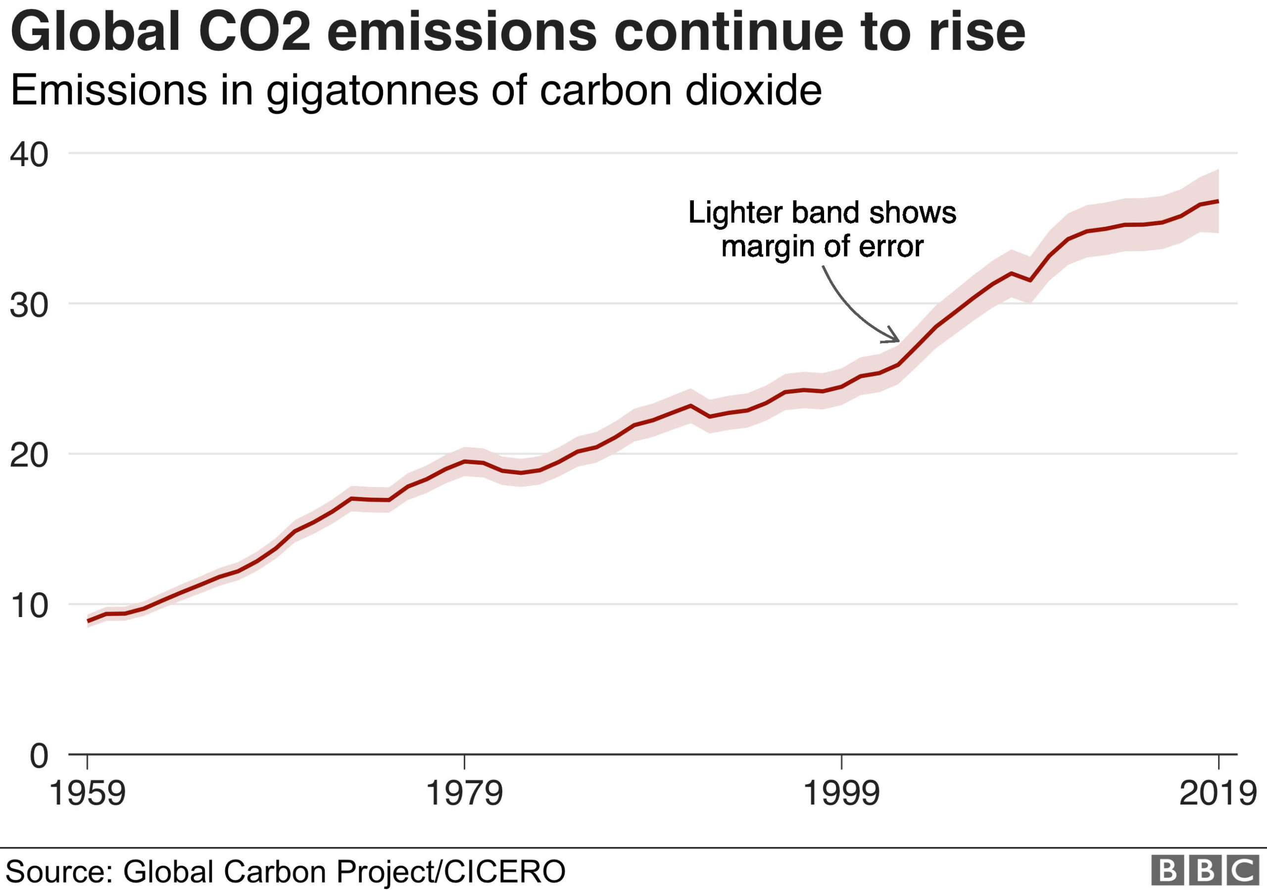 Le istituzioni intelligenti, tuttavia, sanno fare bilanci oculati del proprio operato. La promessa della green economy applicata al riscaldamento globale era al tempo stesso ambiziosa ed esplicita: la “mano invisibile” del mercato saprà ridurre le emissioni di gas climalteranti. Un quarto di secolo è un lasso di tempo più che sufficiente per valutare la bontà di una politica pubblica, a maggior ragione se si parla di crisi ecologica e si accetta l’ovvia considerazione che vi sia urgenza di agire con efficacia. Chiediamoci dunque: sono diminuite le emissioni?