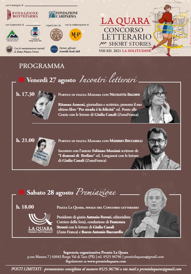 Mancano pochi giorni alla finale del Premio La Quara, concorso letterario per short stories che da otto anni si svolge a Borgo Val di Taro, provincia di Parma.