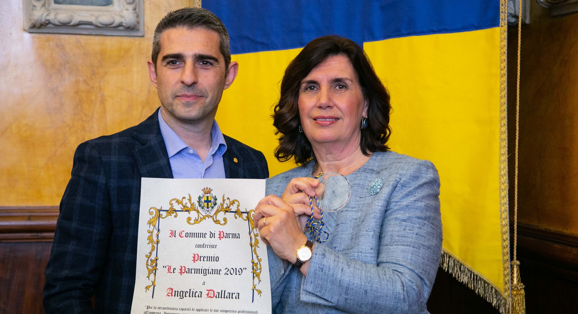 Nella Sala Consiglio del Municipio, il Sindaco di Parma Federico Pizzarotti e Nicoletta Paci assessora alle Pari Opportunità hanno consegnano il Premio “Le Parmigiane” ad Angelica Dallara.