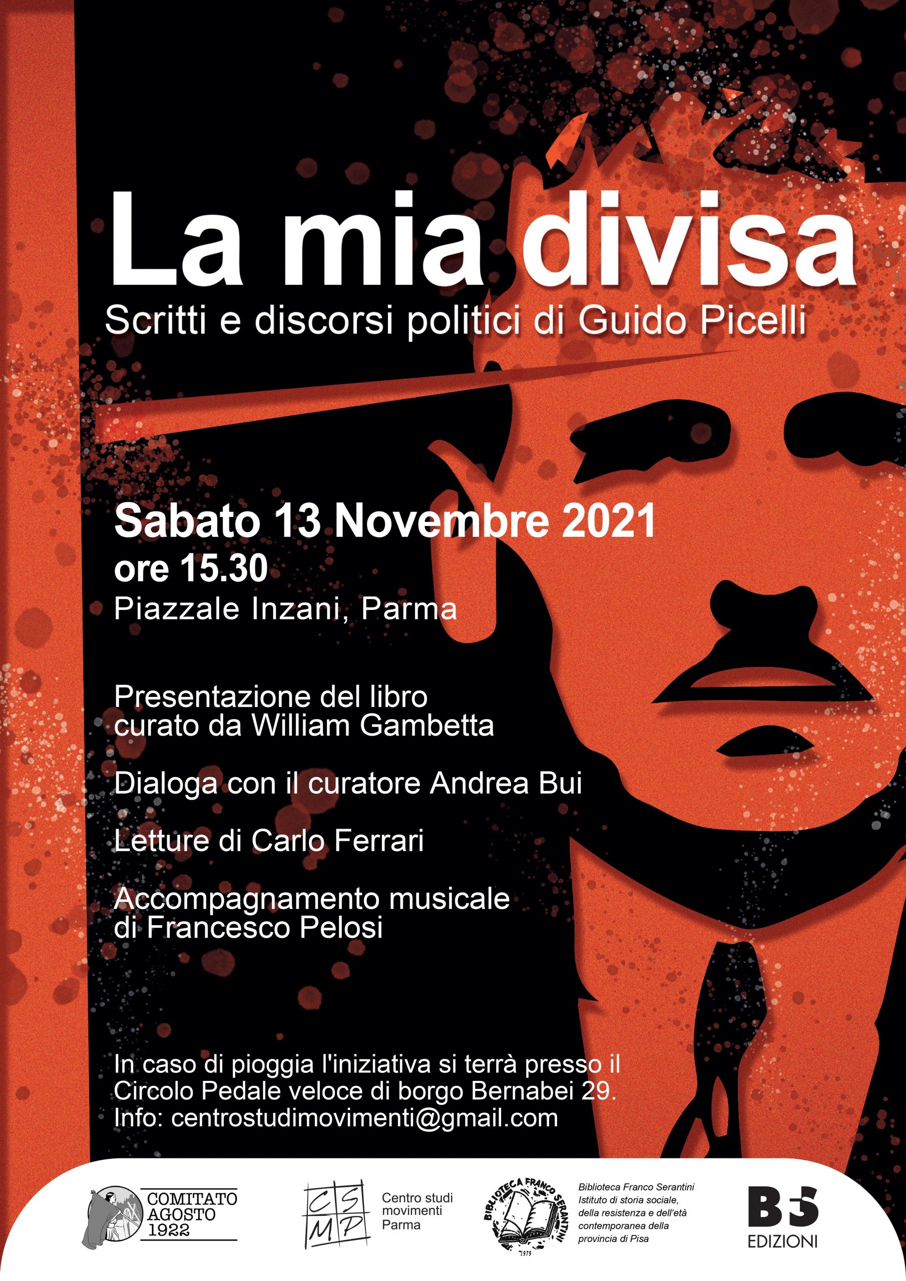 Sabato 13 novembre, alle 15.30, in piazzale Inzani i discorsi e le riflessioni private del “comandante” risuoneranno là dove in gran parte nacquero tra gli anni Venti e gli anni Trenta del secolo scorso, nell’Oltretorrente, per la presentazione del volume con la conversazione fra William Gambetta e l’autore della prefazione Andrea Bui, intervallata dalle letture di Carlo Ferrari e dall’accompagnamento musicale di Francesco Pelosi.
