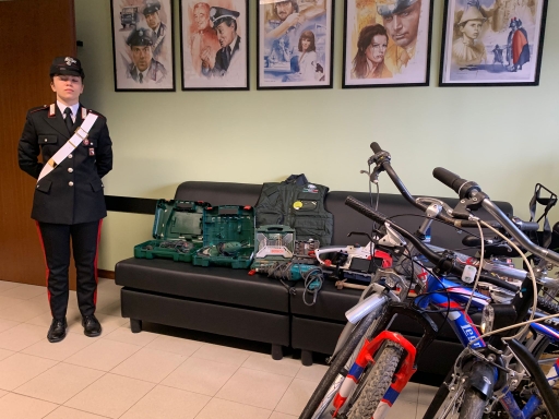 La conseguente perquisizione domiciliare, all’interno della propria abitazione, condivisa con gli altri due indagati, permetteva di rinvenire altra refurtiva, in particolare delle biciclette di valore, asportate la stessa notte all’interno di alcune abitazioni di Colorno e vari arnesi, quali trapani, motoseghe e altri utensili da lavoro. Gli ulteriori accertamenti effettuati permettevano di risalire alle vittime dei furti, a cui veniva restituita tutta la merce asportata, con grande soddisfazione per i proprietari.