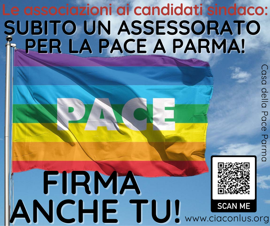 Dalla Siria all’Afghanistan, dallo Yemen alla Birmania, dalla Somalia al Mali e all’Ucraina.  Sempre più ad ogni anno constatiamo l’incremento nella corsa mondiale al riarmo, vediamo che la guerra ritorna anche in Europa, sappiamo – e terrorizza – che la guerra potrebbe essere anche nucleare. Vorrebbero farci pensare che la politica per la pace attiene a livelli che sono più in alto di noi: allo Stato, ai rapporti tra Stati, alle superpotenze e alle alleanze militari. No. La pace è un diritto di ciascuno di noi, di ogni popolo, è un diritto che noi dobbiamo assicurare ai nostri figli. La politica per la pace è fatta di azioni costanti per la pace, che nel nostro territorio possiamo compiere e che richiediamo vengano condotte dalla Amministrazione locale. Per questo la ‘Casa della Pace’ di Parma lancia una proposta a tutte le forze politiche in campo nelle prossime elezioni amministrative: un assessorato per la pace parte integrante della prossima giunta.