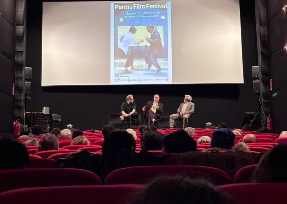 Il Parma Film Festival entra nel vivo con una programmazione per tutti i gusti: la giornata di ieri è cominciata con le prime proiezioni dei corti finalisti del Premio Anna Mattioli, giunto alla seconda edizione. Proposti al pubblico Ce qui appartient à César di Violette Gitton (Francia, 2025, 18’) e Per Finta di Diego Fossati (Italia, 2025,17’), alla presenza del suo montatore Federico Molino che ha raccontato retroscena e aneddoti sulla lavorazione del corto insieme al Presidente della Fondazione Anna Mattioli Roberto Pagliuca.