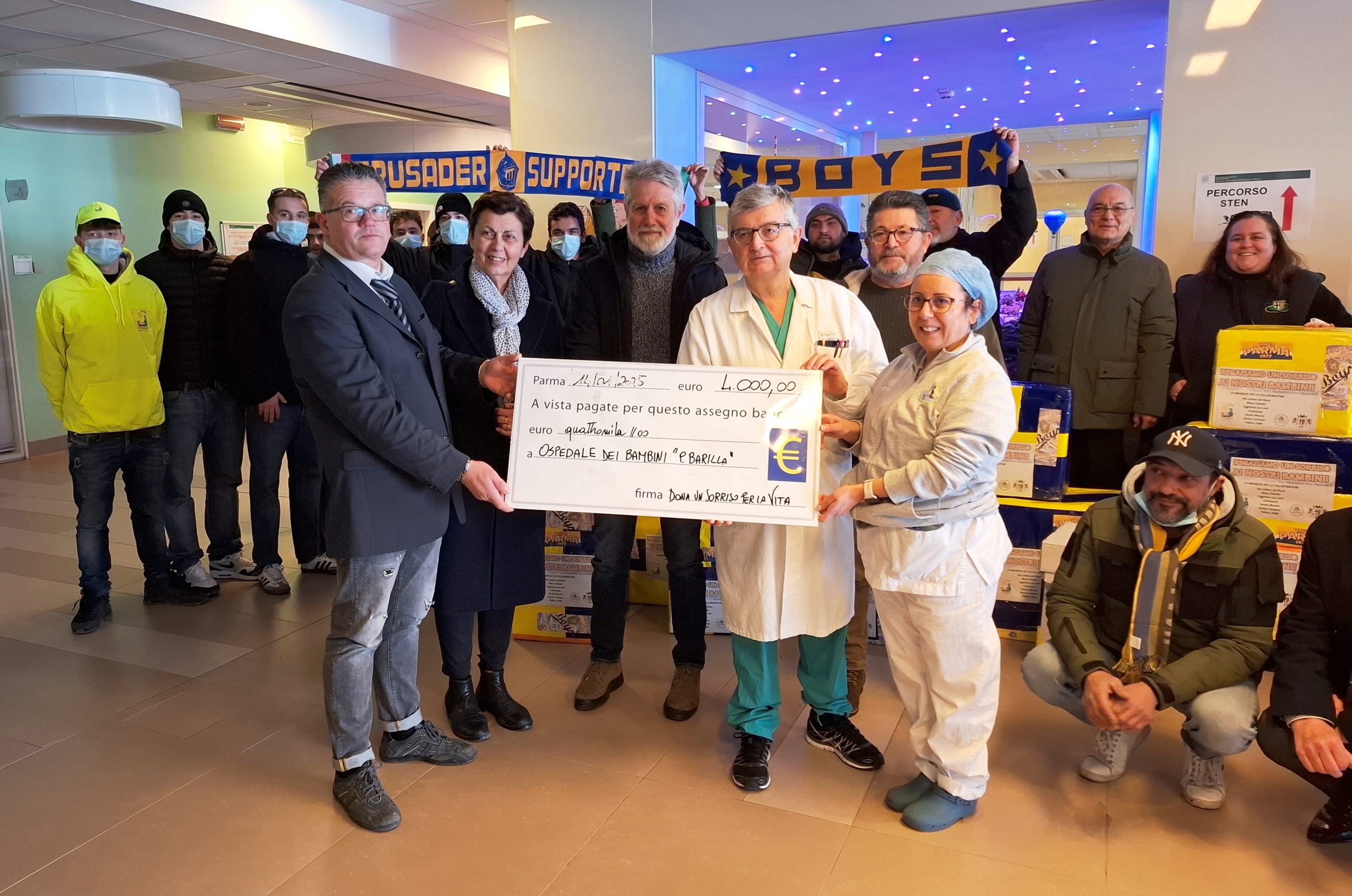 Una donazione da 4mila euro per le apparecchiature dei reparti pediatrici e tantissimi giochi, libri e colori per i piccoli e giovani pazienti offerti dai supporter del Parma Calcio.