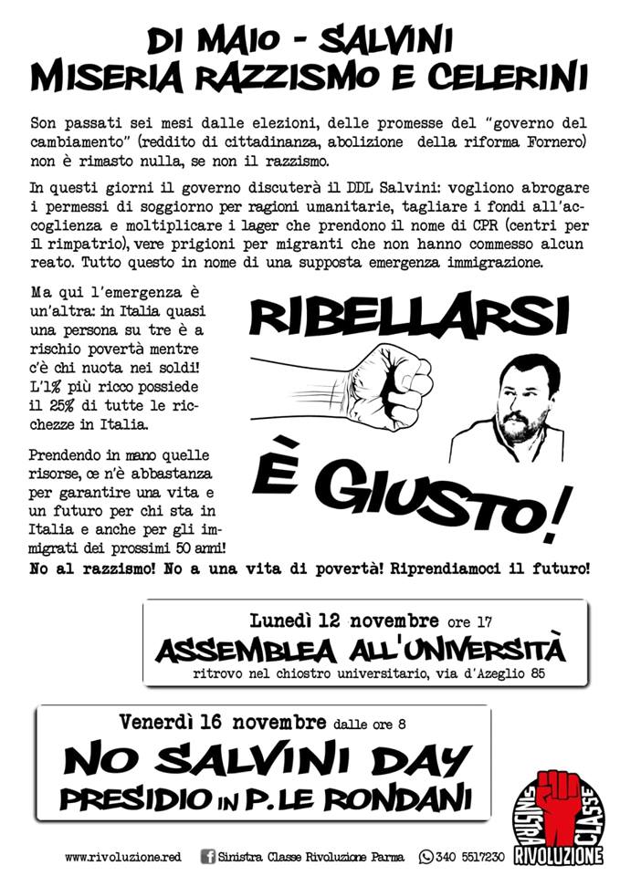 Diciamo che non c’è stata una mobilitazione delle masse popolari di Parma nel “No Salvini Day” organizzato il 16 novembre in piazzale Rondani.