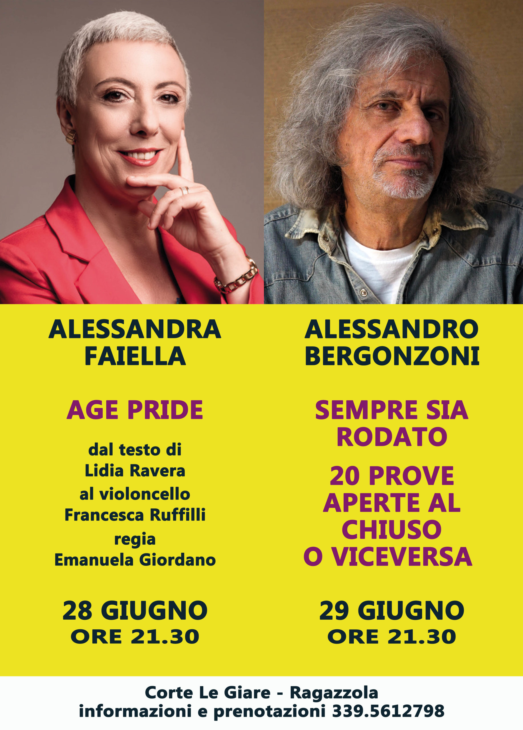 Alla corte Le Giare di Ragazzola, la rassegna teatrale estiva 2024 si apre con due attori d’eccezione: il 28 giugno andrà in scena Alessandra Faiella, mentre il 29 sarà la volta di Alessandro Bergonzoni.