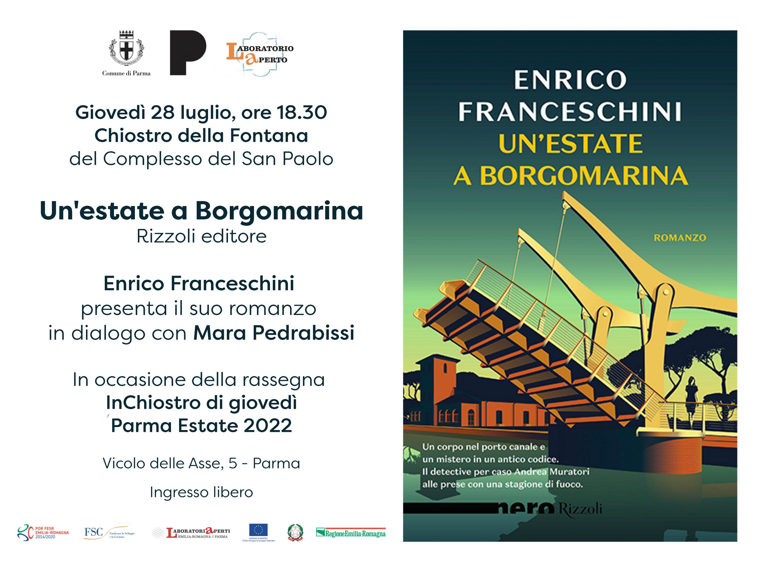 Ultimo appuntamento di luglio delle presentazioni letterarie con aperitivo di “InChiostro di giovedì”, al Chiostro della Fontana del Complesso di San Paolo: giovedì 28 luglio alle 18.30 lo scrittore e giornalista Enrico Franceschini, in dialogo con la giornalista Mara Pedrabissi, presenterà il suo ultimo volume “Un’estate a Borgomarina, edito da Rizzoli.