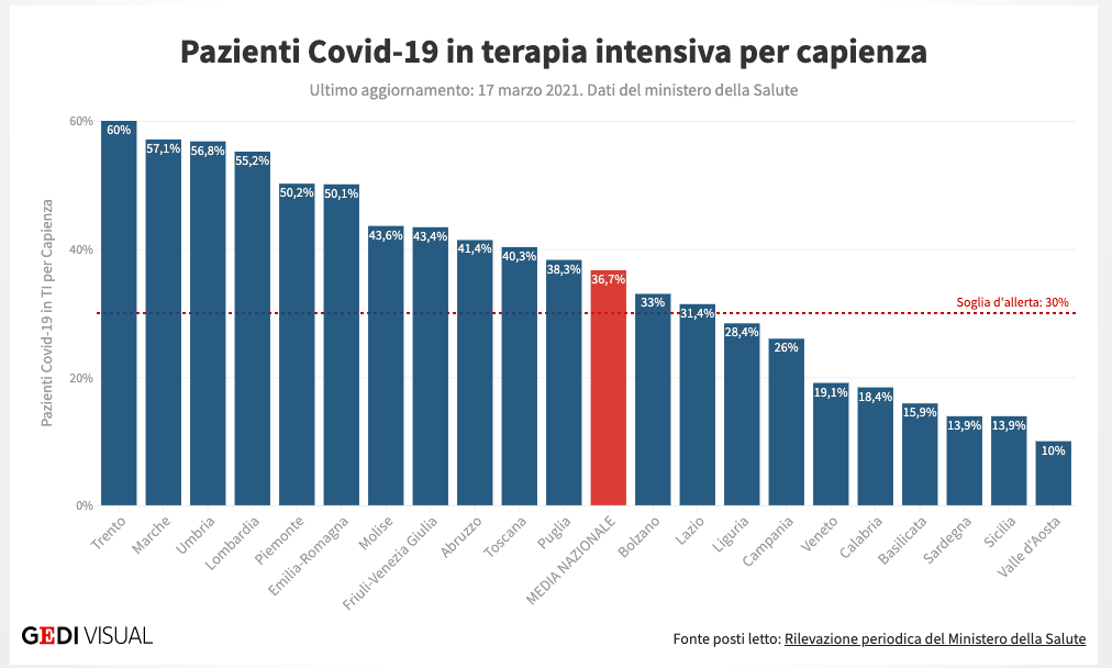 Record di ricoveri in terapia intensiva in Emilia Romagna: superato il picco della prima ondata di aprile 2020 di UG 18 Marzo 2021 18 Marzo 2021 65 Crescono i ricoverati in terapia intensiva in Emilia Romagna (381)che come dato assoluto supera il picco della prima ondata di aprile scorso. In Regione è occupato il 50,1% dei posti disponibili.