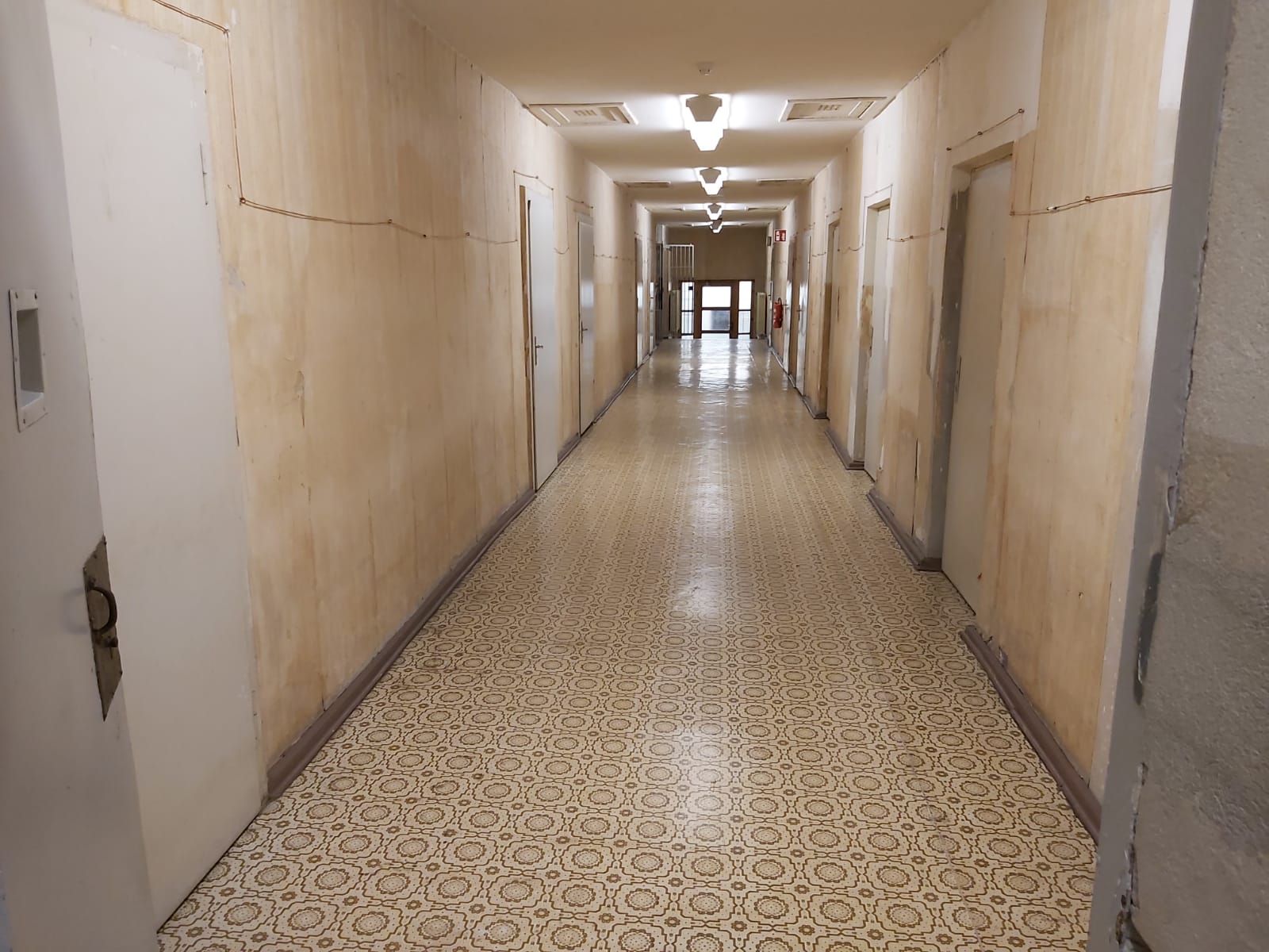 Uscito dal veicolo, la persona veniva introdotta nell’edificio attraverso un lungo corridoio spoglio dai muri arancioni.