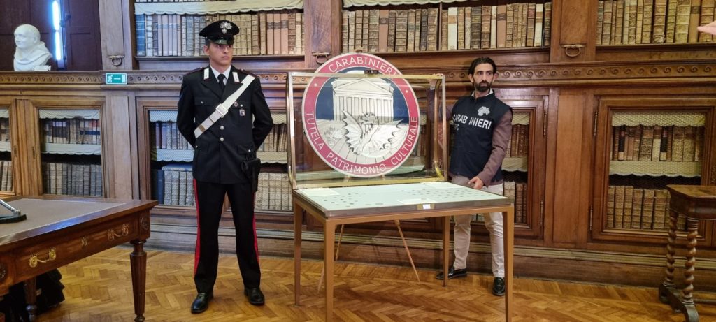 Il 10 luglio 2024, alle ore 10.30, in Parma, Piazzale della Pilotta n. 15, presso il Complesso Monumentale della Pilotta, 56 monete di notevole pregio e rarità, appartenenti al Medagliere del Museo Archeologico del Complesso Monumentale della Pilotta, sono state riconsegnate dal Comandante del Nucleo Carabinieri per la Tutela del Patrimonio Culturale (TPC) di Bologna al Direttore del suindicato Complesso Monumentale.