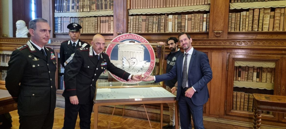 Il 10 luglio 2024, alle ore 10.30, in Parma, Piazzale della Pilotta n. 15, presso il Complesso Monumentale della Pilotta, 56 monete di notevole pregio e rarità, appartenenti al Medagliere del Museo Archeologico del Complesso Monumentale della Pilotta, sono state riconsegnate dal Comandante del Nucleo Carabinieri per la Tutela del Patrimonio Culturale (TPC) di Bologna al Direttore del suindicato Complesso Monumentale.