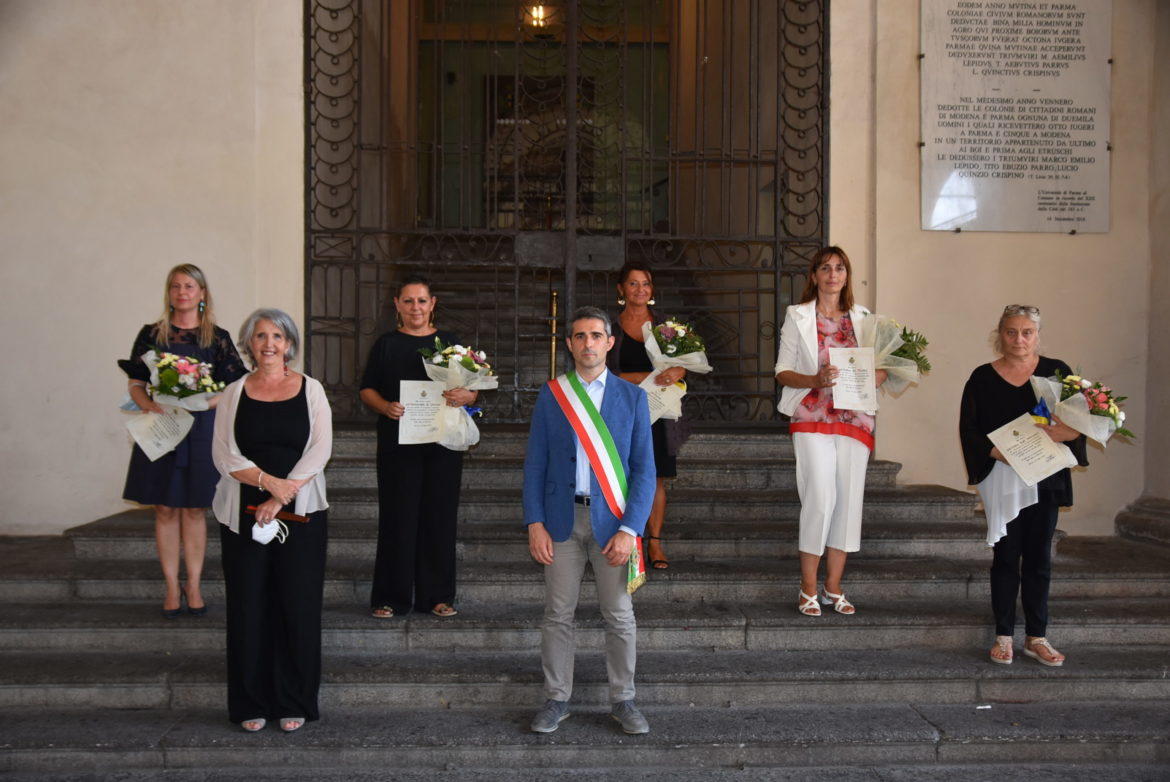 A ricevere la pergamena, nel corso di una cerimonia pubblica, che si è tenuta mercoledì 22 luglio 2020, alle 18, sotto i Portici del Grano, dalle mani del Sindaco Federico Pizzarotti e dall’Assessora alle Pari opportunità Nicoletta Paci, a nome di tutte le donne dell’ente rappresentato sono state.