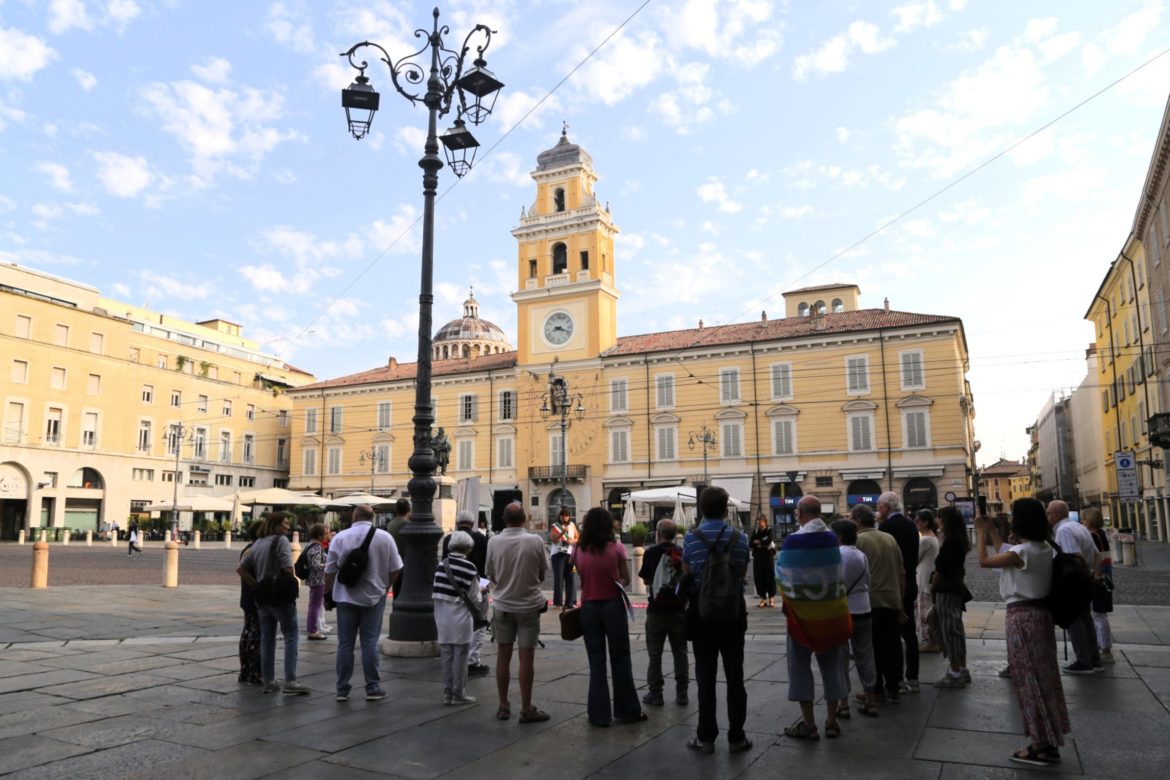 Questa mattina si è svolto, in Piazza Garibaldi, un presidio organizzato dal Comune di Parma e la Casa della Pace, in occasione dell’anniversario dello scoppio della bomba atomica su Hiroshima (6 agosto) e su Nagasaki (9 agosto) nel 1945. I rintocchi della campana del Palazzo del Governatore hanno scandito il tempo della discesa e dell’esplosione della bomba atomica, avvenuta alle ore 8:14.