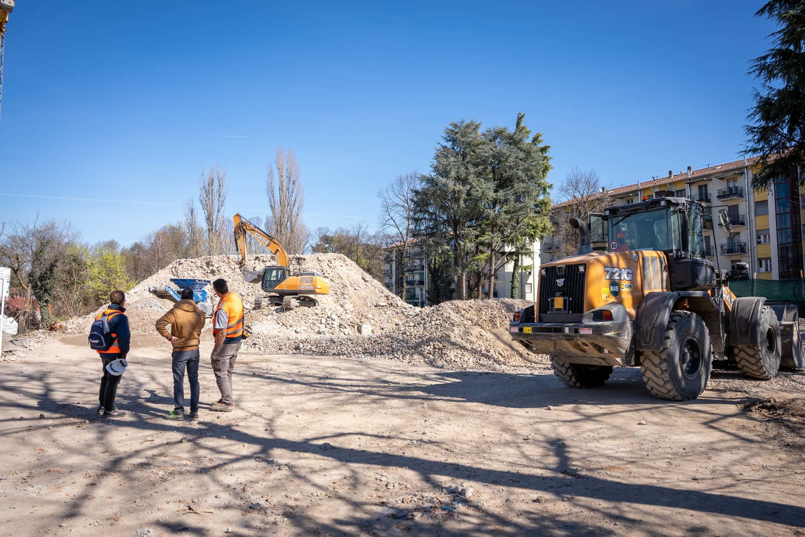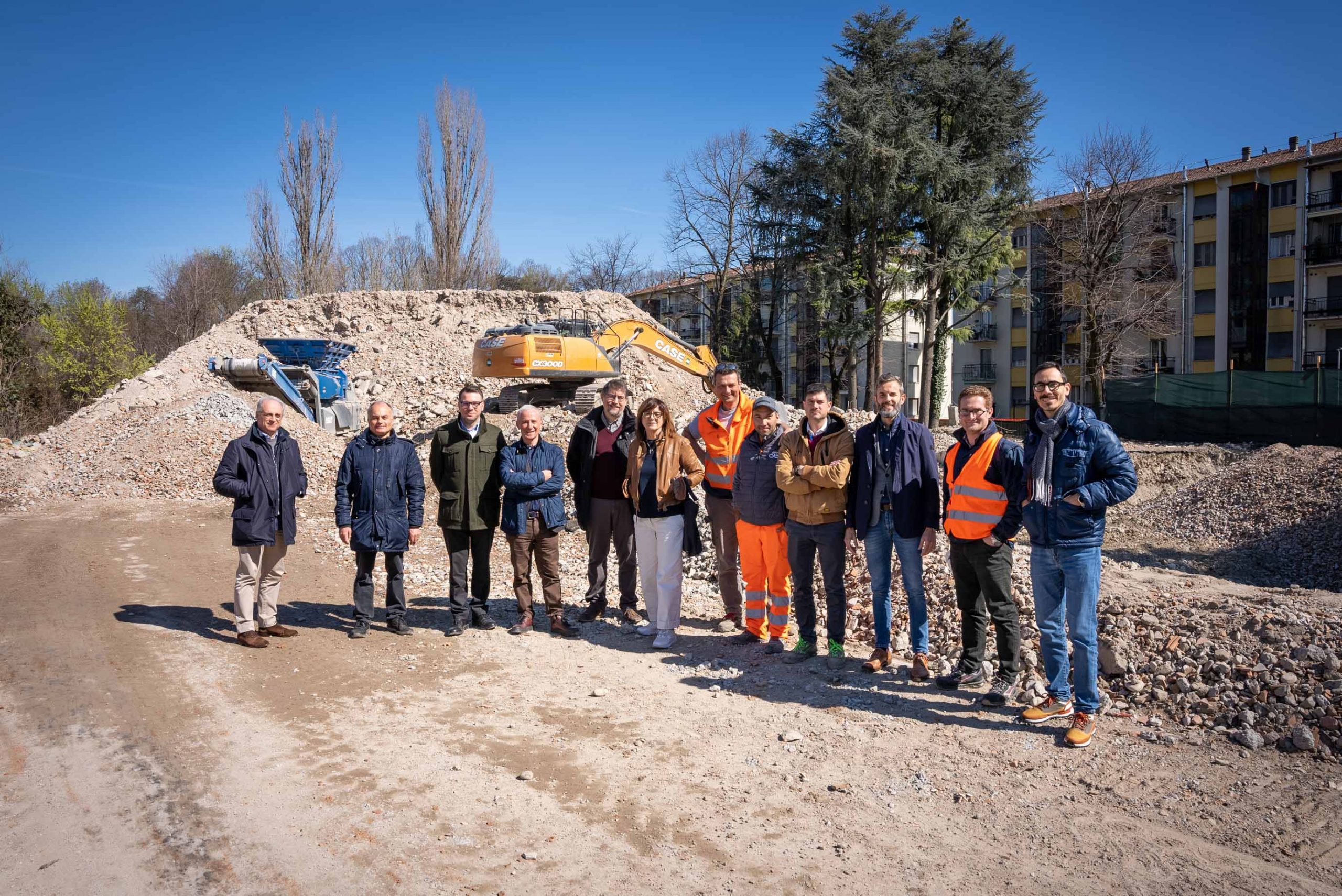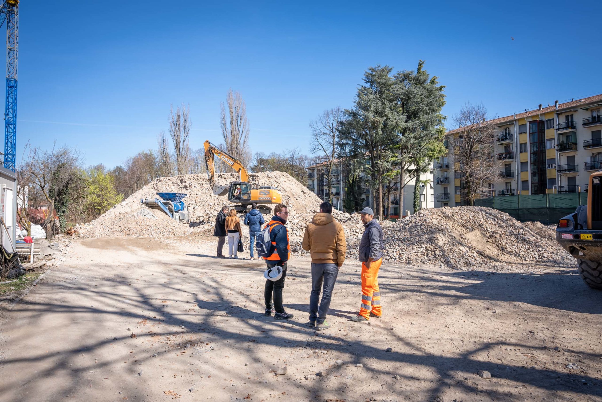 Sopralluogo degli Assessori Ettore Brianti e Francesco De Vanna con i tecnici del Comune e di Parma Infrastrutture Spa nel cantiere di demolizione della ormai ex Residenza XXV Aprile, 5.400 metri quadrati disposti su sei piani, in via Taro 27. Al momento è in corso il recupero dei materiali demoliti.