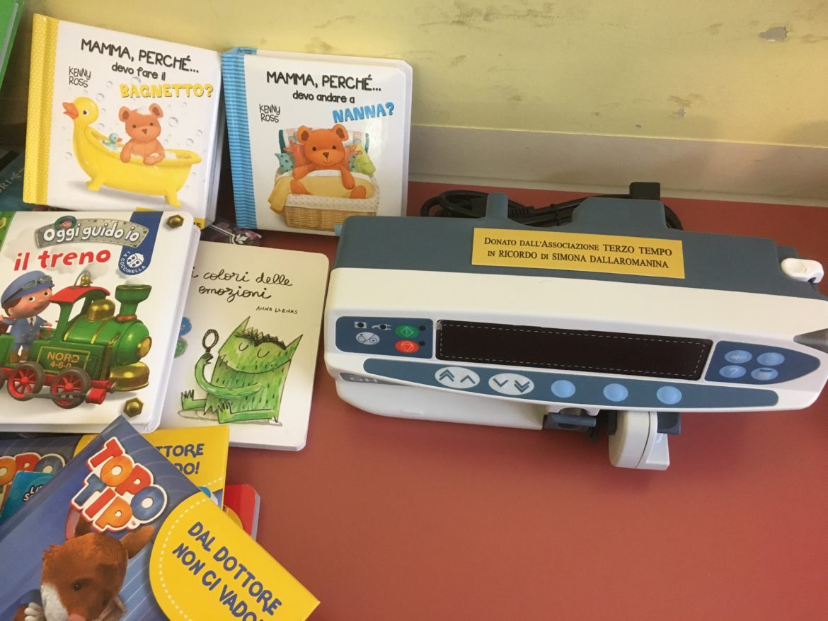 Ma la generosità dell’Associazione Terzo Tempo non si ferma qui. Grazie alla partecipazione all’iniziativa “Aiutaci a crescere. Regalaci un libro” promossa dalle librerie “Giunti al punto” l’Associazione ha acquistato per l’U.O. di Pediatria una biblioteca. I libri, del valore di circa 600 euro, sono quindi disponibili per i piccoli pazienti sia negli ambulatori che all’Osservazione Breve Pediatrica. Alla realizzazione della biblioteca hanno contribuito anche singoli cittadini, ai quali va il ringraziamento dell’Azienda USL.
