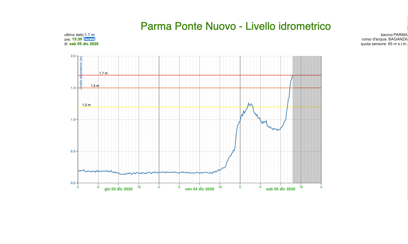 Rischio idraulico: il Baganza ha raggiunto la soglia rossa a Parma di UG 5 Dicembre 2020 5 Dicembre 2020 25 Il corso d’acqua Baganza ha raggiunto il livello da soglia rossa in corrispondenza del Ponte Nuovo a Parma. Aggiornamento delle ore 15.30.