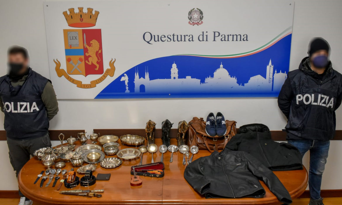 Parte di questa refurtiva è già stata riconosciuta dai legittimi proprietari, vittime di furti perpetrati a Collecchio (Pr), Sant’Ilario d’Enza (Re), Castelnovo sotto (Re) e Bibbiano (Re), tuttavia, sono ancora in corso le ricerche dei legittimi proprietari di ulteriori beni rinvenuti e custoditi presso gli Uffici della Squadra Mobile. Si ritiene che i colpi siano stati posti a segno nei Comuni delle province di Parma e Reggio Emilia nella prima metà dello scorso mese di ottobre.