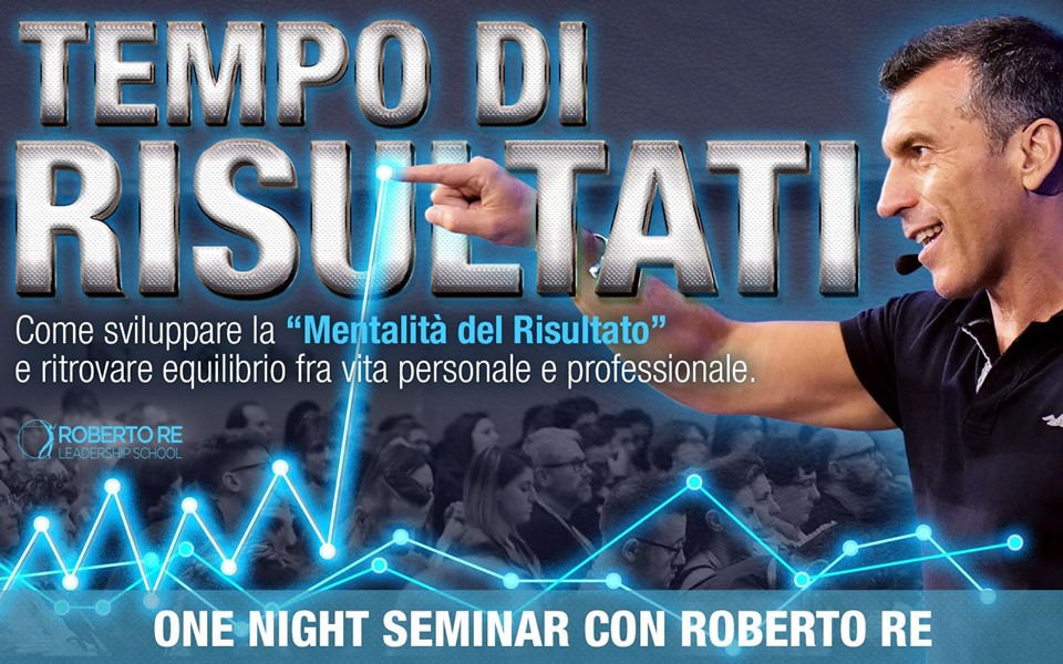 Giovedì 16 maggio Roberto Re fa tappa all’Hotel Parma & Congressi con un one night seminar di cinque ore dalle 19.00 alle 24.00 dal titolo “Tempo di risultati”, in cui insegnerà il suo metodo per sviluppare una mentalità rivolta al raggiungimento degli obiettivi in meno tempo e con minore stress.
