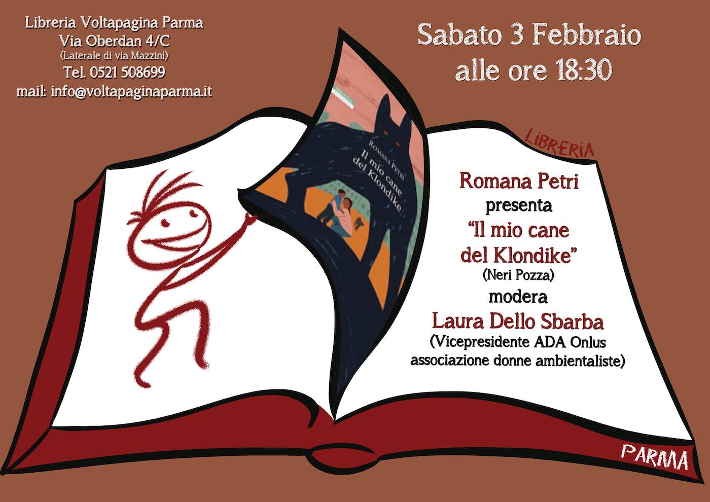 Sabato 3 febbraio alle ore 18.30 sarà a Parma, alla Libreria Voltapagina Parma, in via Oberdan 4/C (laterale di via Mazzini).