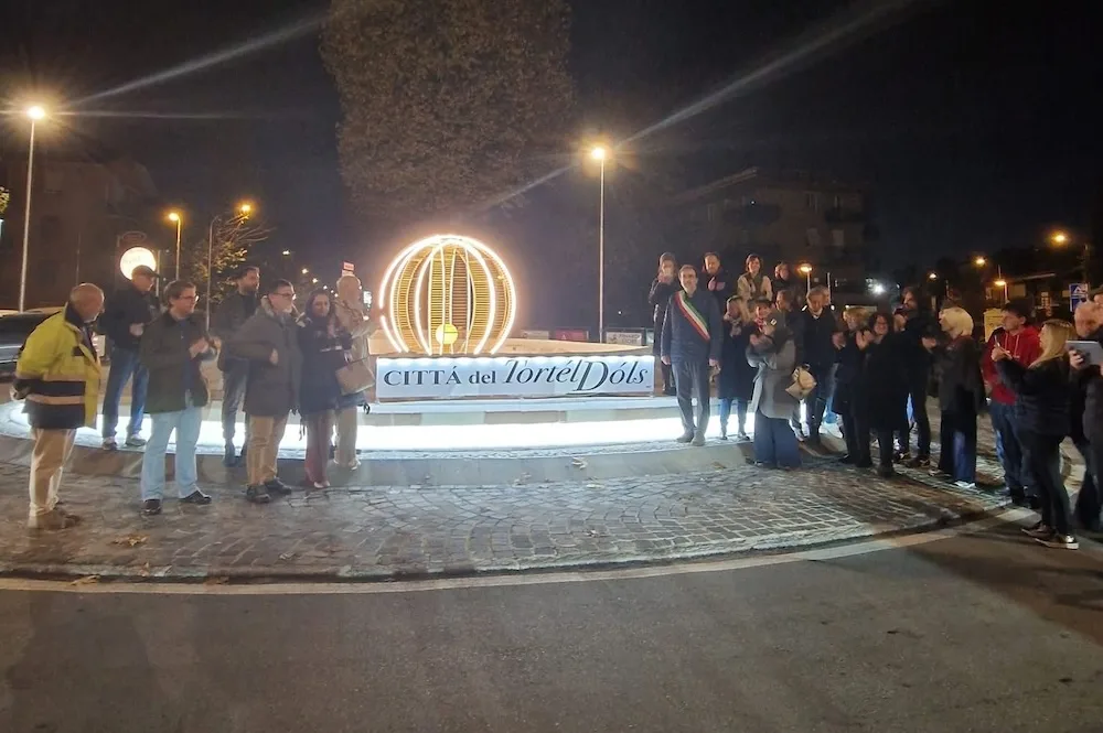 Successivamente, a seguito di un sinistro che ha distrutto quel primo allestimento, è intervenuto lo sponsor – la Confraternita del Tortél Dóls – e la rotatoria è stata modificata fino a giungere all’aspetto attuale. È evidente che questo “aggiornamento” abbia comportato un ulteriore impiego di risorse comunali non coperte dalla sponsorizzazione.