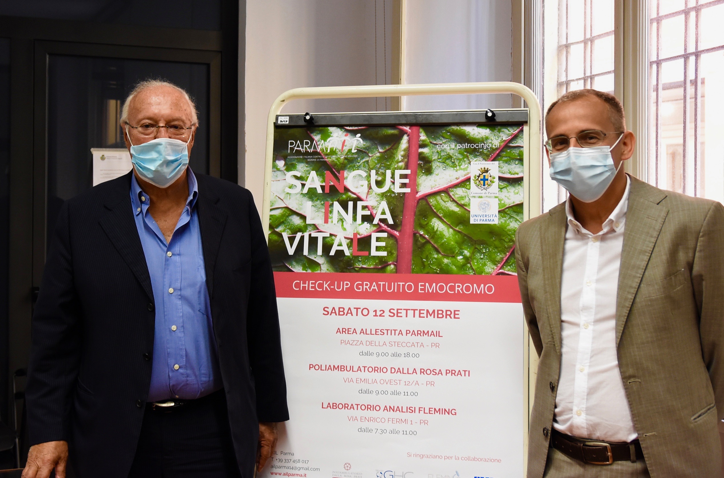 Anche quest’anno, con il patrocinio del Comune di Parma, nella giornata di sabato 12 settembre 2020, in Piazzale della Steccata e contemporaneamente presso il poliambulatorio Dalla Rosa Prati in via Emilia Ovest 12/A e presso il Laboratorio di Analisi Fleming in via Enrico Fermi 1, la popolazione avrà l’opportunità di sottoporsi allo screening ematologico gratuito finalizzato alla diagnosi precoce delle patologie ematologiche.