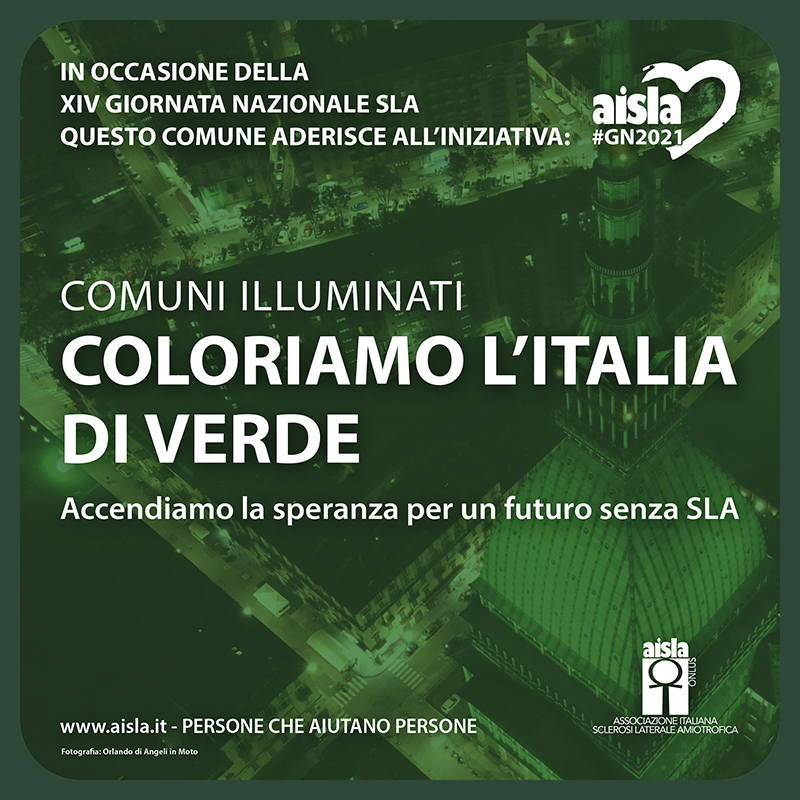 “Coloriamo l’Italia di verde” è la vera e propria magia che si ripete ormai da anni. In collaborazione con ANCI, Associazione Nazionale Comuni Italiani, moltissimi comuni italiani nella notte della vigilia tra sabato 18 e domenica 19 settembre 2021, illumineranno di verde centinaia di monumenti in occasione della XIV Giornata Nazionale sulla SLA.