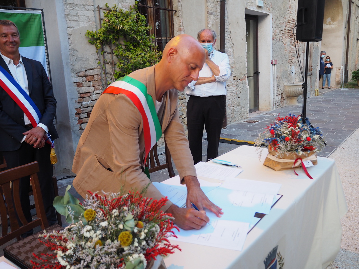 La liaison italo-francese è stata sancita infatti nel tardo pomeriggio di lunedì 10 agosto, giorno del patrono San Lorenzo, con la firma dell’atto ufficiale da parte dei due sindaci, Spina e Yvon Ventadoux, ratificato dalla presidente del Comitato per il Gemellaggio Christiane Lafaye-Lambert. Presente per l’occasione anche Centurio Frignani, segretario regionale dell’Associazione Italiana per il Consiglio dei Comuni e delle Regioni d’Europa (AICCRE).