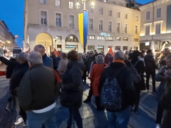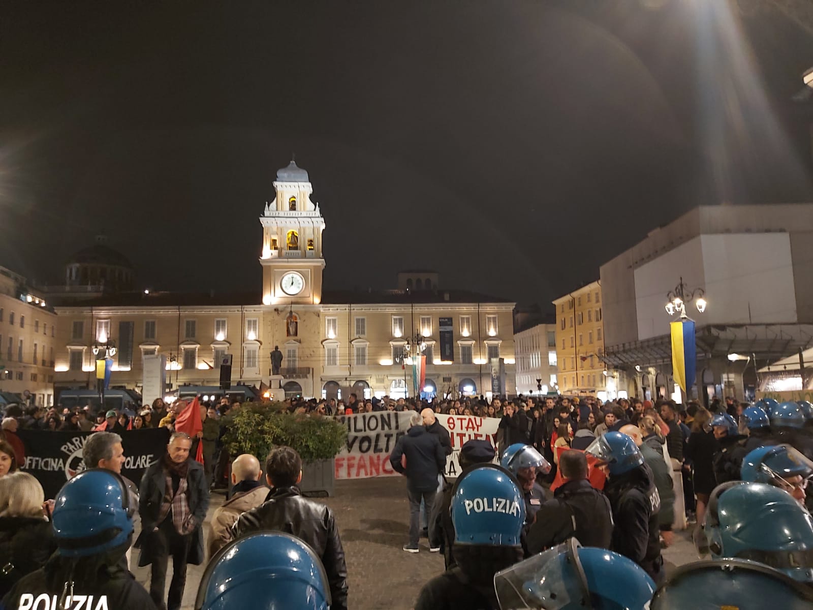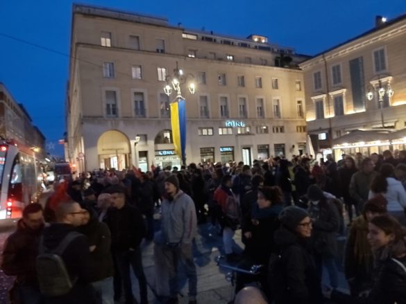 Contemporaneamente al comizio di Salvini Officina Popolare ha organizzato un presidio in Piazza Garibaldi contro la sua venuta a Parma.