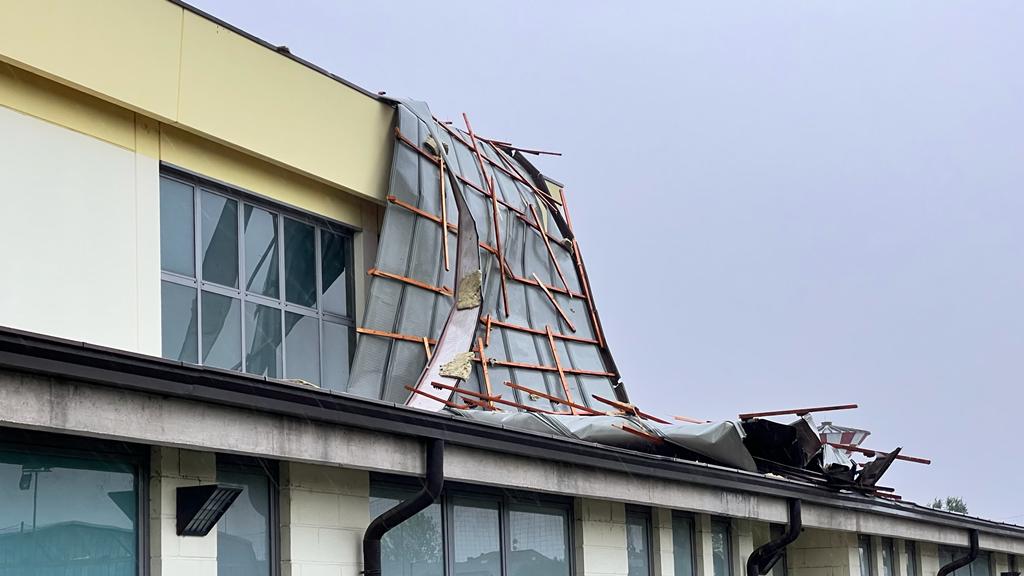 Il violento temporale, con forti raffiche di vento, che ha colpito, questa mattina (18 agosto), varie zone del Nord Italia – e in particolare diversi comuni del Parmense – ha danneggiato la parte rimanente del vecchio tetto del Palazzetto dello Sport di San Polo, una porzione di copertura metallica in attesa di essere rimossa in vista dei lavori di ricostruzione dell’intero tetto e di rifacimento della pavimentazione del Palazzetto a seguito della potente tromba d’aria che colpì la struttura il 26 luglio del 2021.