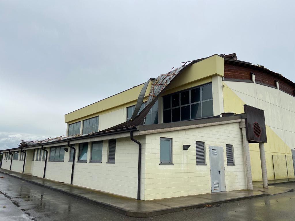 Il violento temporale, con forti raffiche di vento, che ha colpito, questa mattina (18 agosto), varie zone del Nord Italia – e in particolare diversi comuni del Parmense – ha danneggiato la parte rimanente del vecchio tetto del Palazzetto dello Sport di San Polo, una porzione di copertura metallica in attesa di essere rimossa in vista dei lavori di ricostruzione dell’intero tetto e di rifacimento della pavimentazione del Palazzetto a seguito della potente tromba d’aria che colpì la struttura il 26 luglio del 2021.