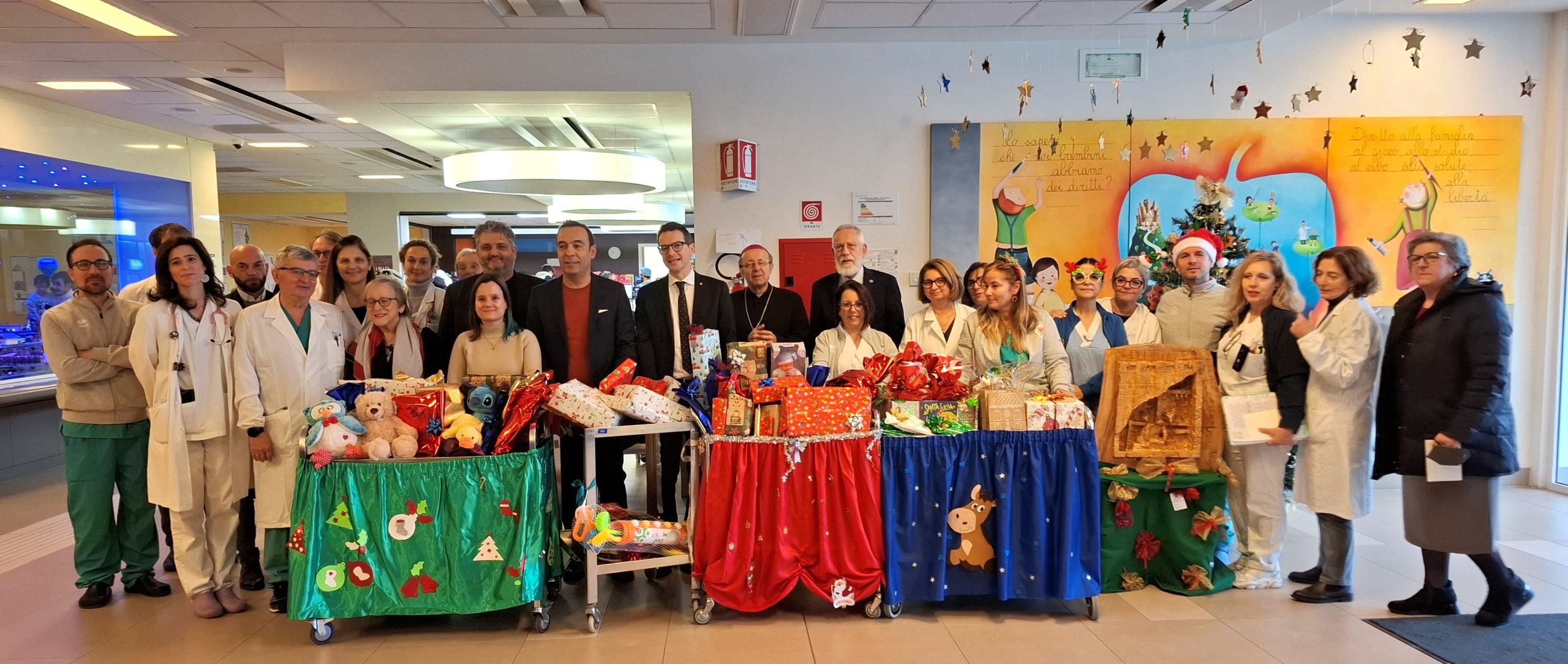 Alla consegna dei regali erano presenti la vice presidente di Fondazione Cariparma Elena Saccenti, il rettore dell’Università di Parma Paolo Martelli, il sindaco di Parma Michele Guerra con l’assessora alla scuola Caterina Bonetti, il presidente della Provincia Alessandro Fadda. Nell’occasione il vescovo di Parma mons. Enrico Solmi ha benedetto la Cappellina collocata all’interno dell’Ospedale dei Bambini e l’associazione ABC ha donato un’icona di Santa Lucia, scritta dall’iconografa Carla Schiappa al laboratorio di Maria Roberta Valesi.