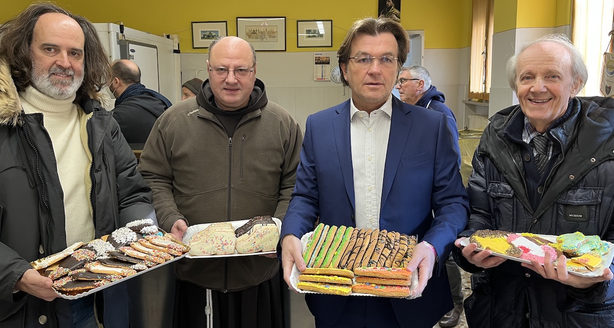 Come lo scorso anno una delegazione del gruppo consigliare Vignali ha donato le tradizionali scarpette di S. Ilario, i tradizionali dolci del patrono parmigiano alla mensa di Padre Lino. A consegnarle a Fra Michele (responsabile della mensa) sono stati Pietro Vignali, Fabrizio Pallini e Marco Osio che hanno voluto far vivere questa nostra importante ricorrenza anche agli ospiti della mensa.