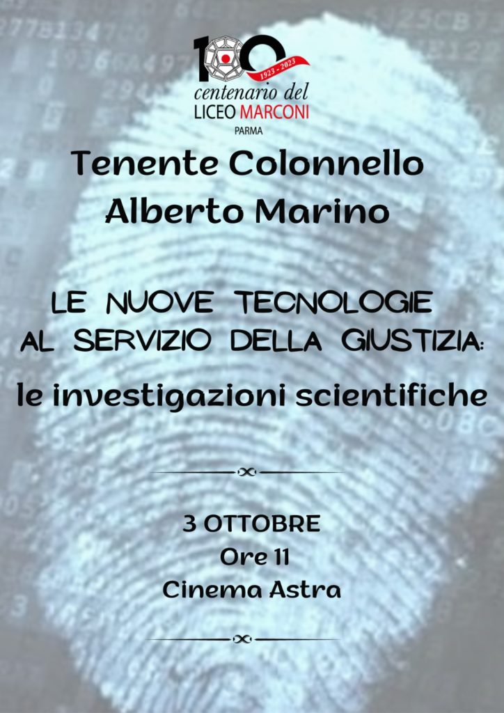 Marconi e Scienza. Un binomio perfetto per riaccendere l’attenzione sulle celebrazioni del Centenario del liceo parmigiano che ripartono proprio ad ottobre con un programma fittissimo di appuntamenti, lectiones magistrales e racconti aperti alla cittadinanza e ad ingresso gratuito. A dare inizio a quest’ultima parte del calendario ufficiale, dopo la lunga pausa estiva, sarà un ospite d’eccezione, il tenente colonnello dei RIS di Parma, Alberto Marino, che nella conferenza/dibattito “Le nuove tecnologie al servizio della giustizia: le investigazioni scientifiche” affronterà l’argomento “scienza” da un punto di vista inusuale, quello relativo alla metodologia e alla strumentazione usata per l’indagine criminologica. L’incontro con il colonnello Marino – che, lo ricordiamo, ha investigato su numerosi casi giudiziari tra i quali la strage di Erba e l’omicidio della giovane Yara Gambirasio, e si è recentemente dedicato in alcune sue pubblicazioni alle nuove tecnologie di sequenziamento del DNA – si svolgerà martedì 3 ottobre, alle ore 11.00, presso il cinema Astra.