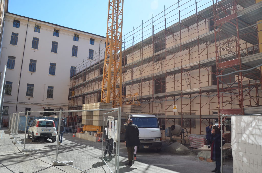 A seguito delle valutazioni di natura strutturale e sismica effettuate da un team di tecnici, gli interventi necessari per il miglioramento sismico del fabbricato sono stati suddivisi in due stralci: nell’estate del 2020 sono stati eseguiti gli interventi relativi al piano terra dell’immobile, mentre ora sono in corso di completamento il miglioramento sismico del fabbricato e quindi si sta intervenendo sui piani primo e secondo e sul tetto.