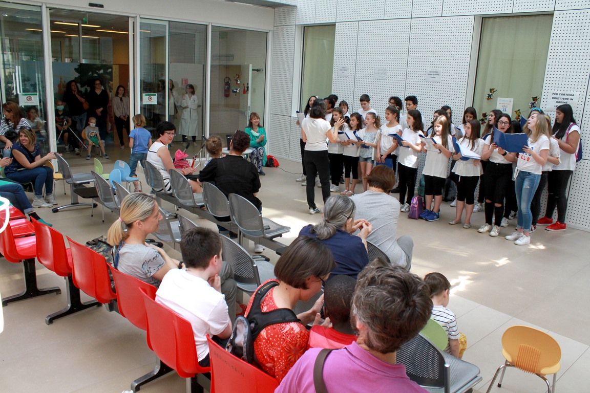 Il debutto è avvenuto venerdì 1 giugno nella sala d’attesa del 1° piano dove si è esibito, in un allegro concerto dal titolo “Un cuore di voci”, il coro della scuola Ferrari diretto dalla prof.ssa Anna Arduini. Lunedì 4 giugno, sempre alle ore 11 sarà invece la scuola Maria Luigia a portare un momento ludico nei reparti pediatrici con il coro formato da ragazzi delle elementari e medie diretto dalla professoressa Francesca Olivieri e le musiche tratte dai grandi classici di Walt Disney.