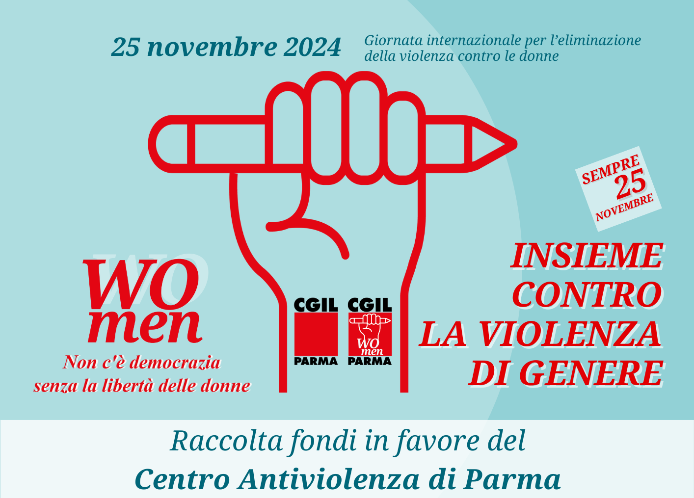 Riparte in tutte le sedi CGIL sul territorio e nei luoghi di lavoro, la raccolta fondi SEMPRE 25 NOVEMBRE in vista della Giornata internazionale per l’eliminazione della violenza contro le donne.