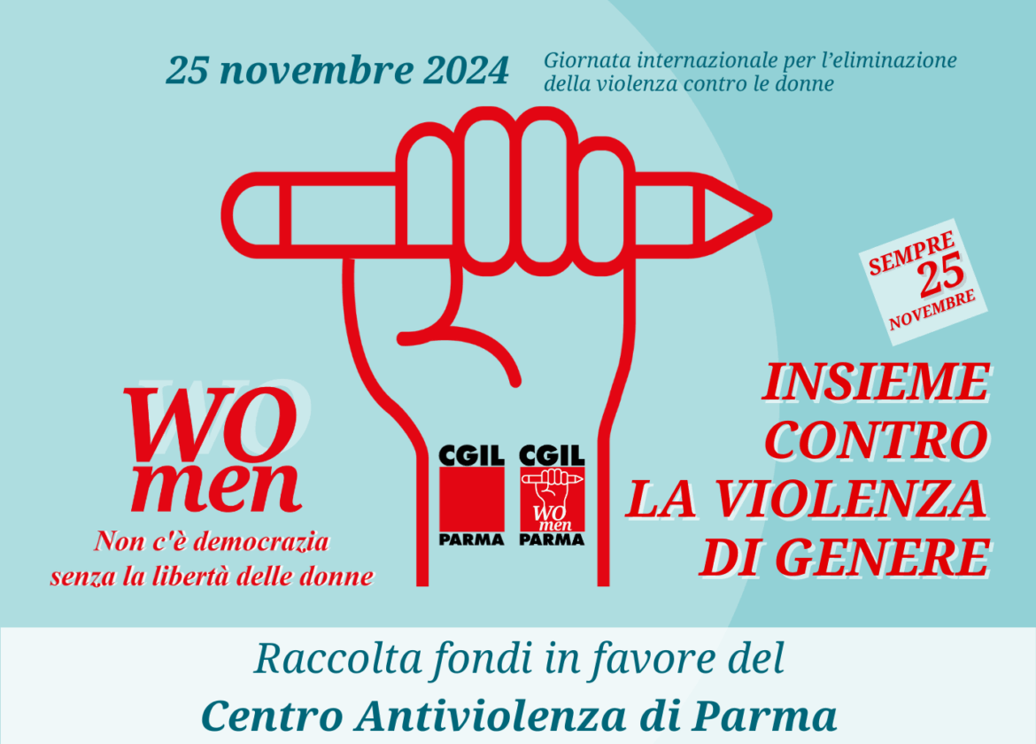 Con questa semplice ma concreta azione Women CGIL Parma si impegna, coinvolgendo le lavoratrici e i lavoratori in modo fattivo per sostenere il Centro Antiviolenza di Parma, fondamentale presidio di tutela e opportunità di riscatto per tutte le donne e i loro figli che fuggono da situazioni di violenza e sopruso domestico.