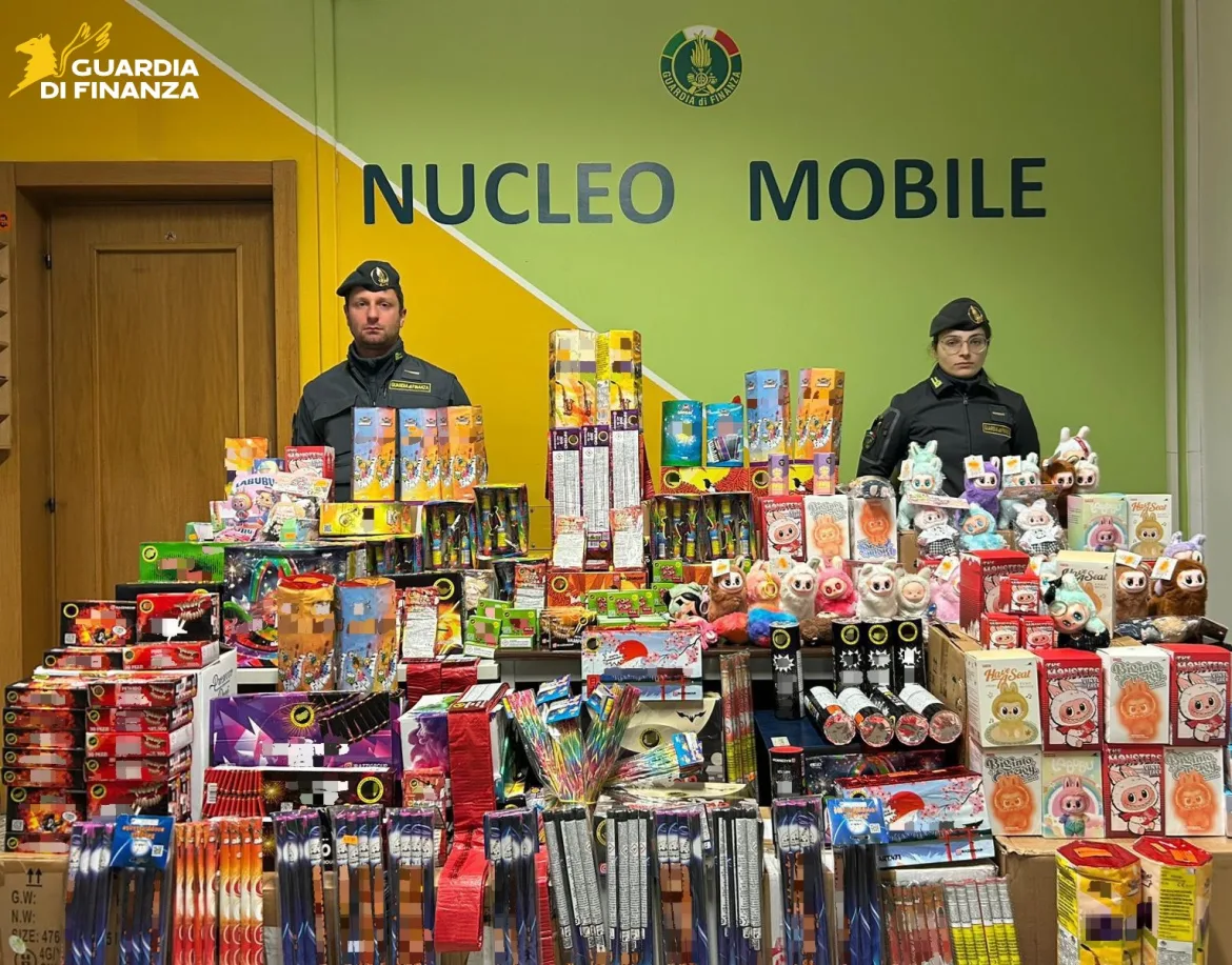Il Comando Provinciale della Guardia di Finanza di Parma, nel corso di specifici controlli in materia di sicurezza prodotti e per la tutela dei consumatori, intensificati in vista delle prossime festività natalizie, ha sequestrato 54.264 articoli pirici, tra i quali bengala, petardi e fontane pirotecniche posti in vendita senza autorizzazioni e custoditi in violazione delle norme di sicurezza, nonché 235 peluche “Labubu” contraffatti.