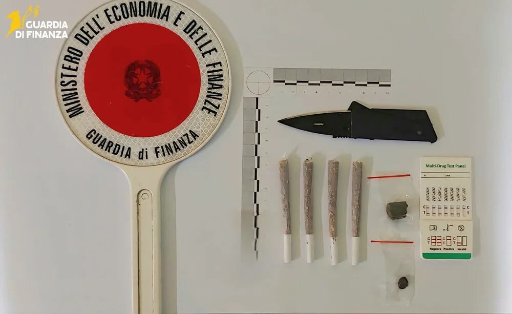 Avvicinatisi per un controllo, i finanzieri hanno sorpreso i ragazzi nel tentativo di disfarsi della droga, subito recuperata. Oltre a pochi grammi di hashish, uno dei due è stato trovato in possesso di un coltello tattico pieghevole, modello “card knife”, nascosto tra i propri effetti personali.