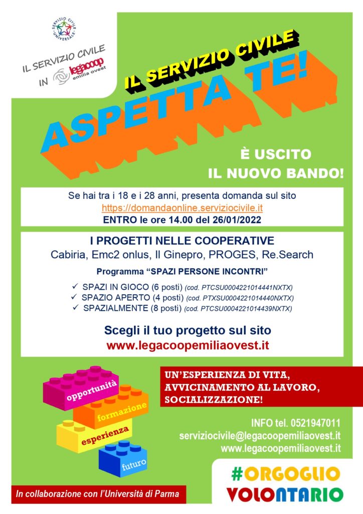 Legacoop Emilia Ovest presenta le opportunità del Servizio Civile Universale per i giovani tra i 18 e i 28 anni.