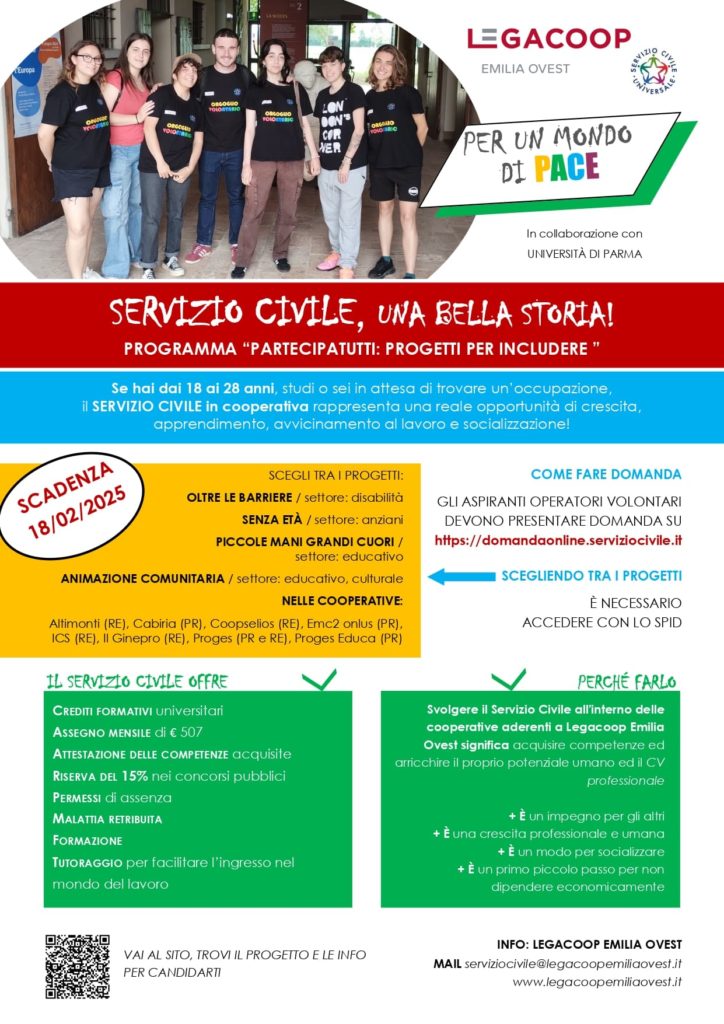 Legacoop Emilia Ovest è accreditata per il SERVIZIO CIVILE UNIVERSALE.