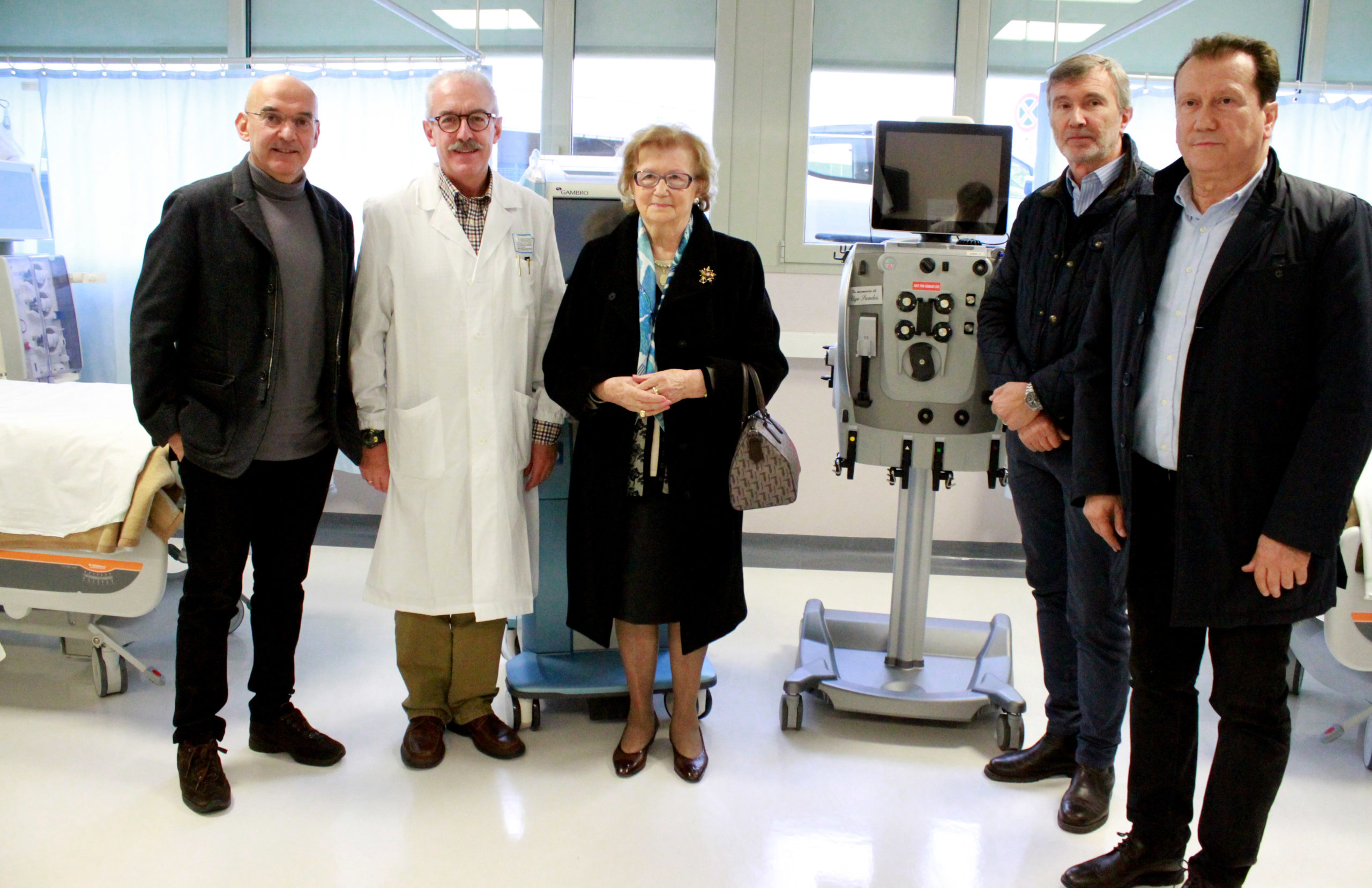 “Queste apparecchiature hanno consentito a mio marito di vivere per 13 anni nonostante la malattia e così, insieme ai miei figli Pietro e Stefano, abbiamo deciso di ringraziare il reparto dove abbiamo trovato tanta professionalità e tanta umanità in ogni momento della nostra lunga frequentazione”. Sono le parole commosse di Bruna Sartori quando annuncia al Prof. Enrico Fiaccadori, direttore della Nefrologia dell’Azienda Ospedaliero-Universitaria di Parma, la sua intenzione di donare ben sette apparecchiature per dialisi che andranno a sostituire quelle più obsolete e rinforzeranno la dotazione del reparto che potrà così offrire ai pazienti ricoverati nelle strutture del Maggiore le tecnologie più avanzate per la cura dell’insufficienza renale. Una donazione importante quella della signora Sartori che come unico ringraziamento ha chiesto di dedicarla al marito Ugo Sandei, recentemente scomparso. “L’ho fatto con il cuore – afferma la signora – sperando che migliori sempre di più le condizioni di vita dei pazienti che dipendono da queste macchine”.