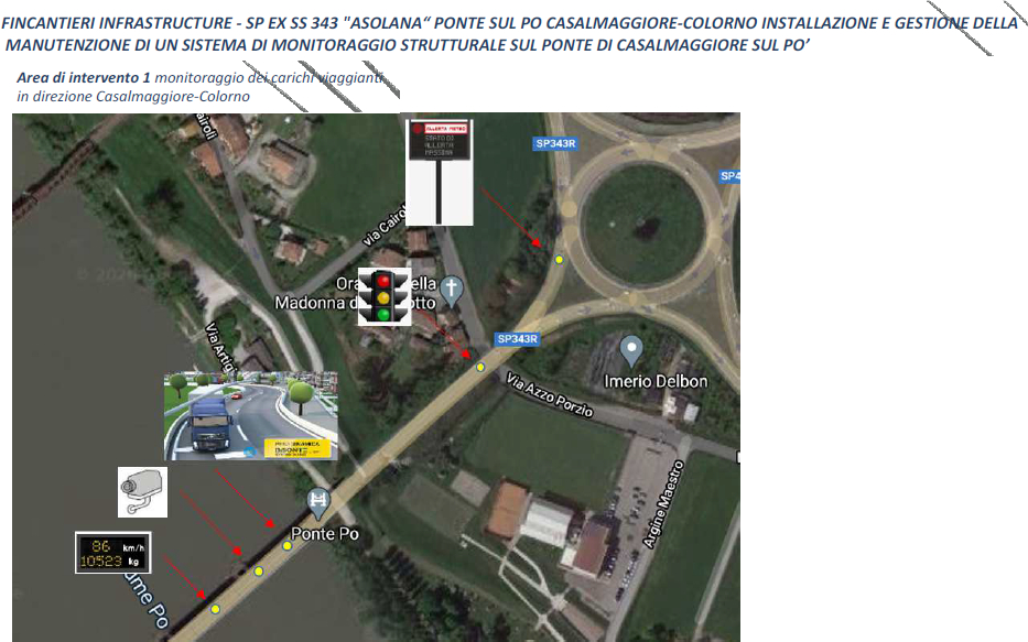 “In questo momento stiamo installando la dorsale cablata lato Casalmaggiore e poi proseguiremo con le stesse attività sul lato Colorno; prevediamo per gennaio 2021 di installare i sistemi di pesatura dinamica Weight in Motion e i relativi pannelli di informazione all’utenza ed infine il collaudo per il mese di febbraio” – ha spiegato Ing. Luca Grisenti direttore tecnico di Fincantieri – Il sistema di monitoraggio che stiamo installando è lo stesso collaudato lo scorso luglio sul ponte San Giorgio di Genova sul Polcevera, una tecnologia completamente all’avanguardia che stiamo sperimentando”.