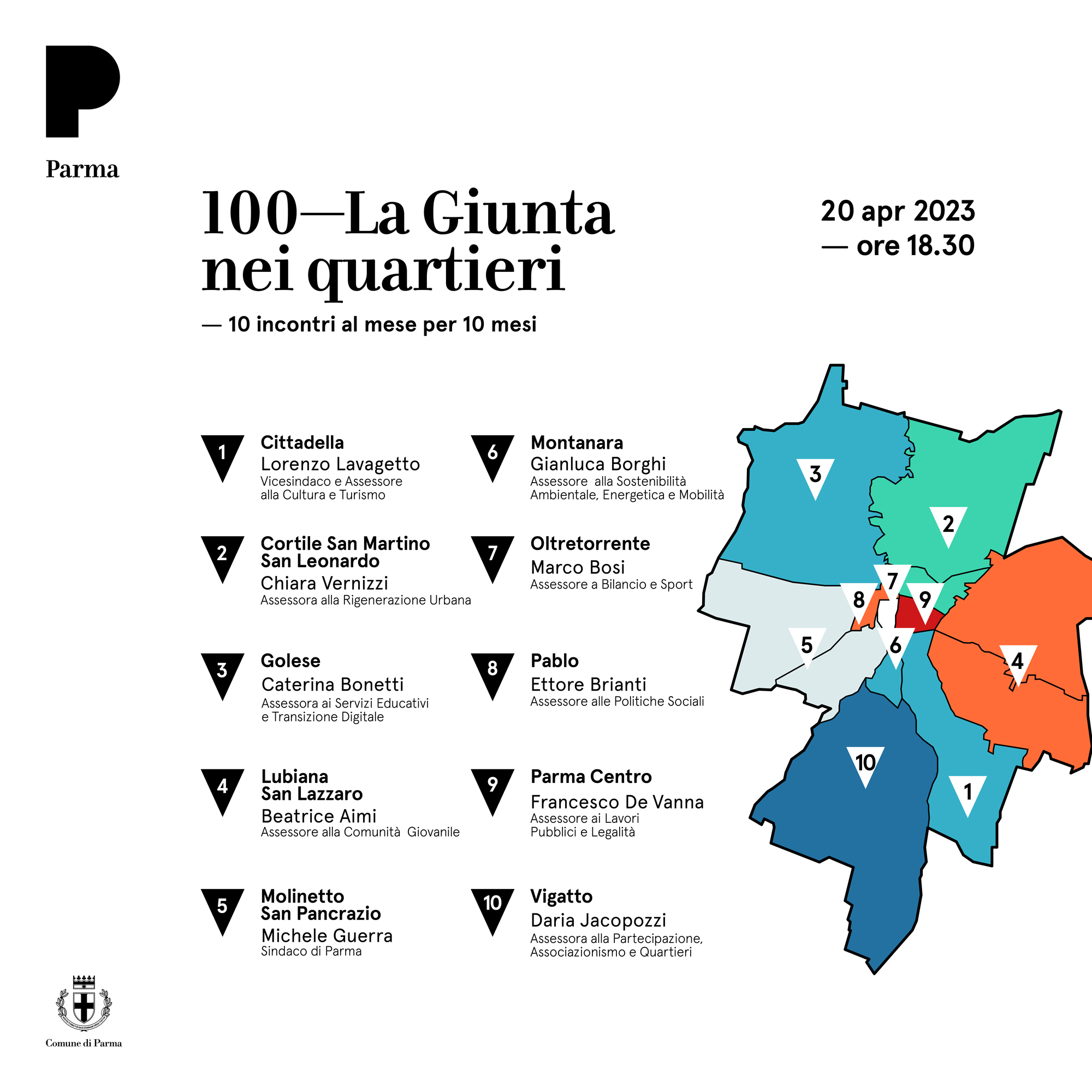 - Quartiere Parma Centro, nel Complesso di San Paolo – Sala Giovanna, vicolo delle Asse 5, con l’Assessore ai Lavori Pubblici e Legalità, Francesco De Vanna.