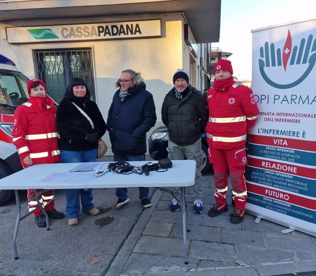 A bordo dell’ambulanza, posizionata in viale della Rocca, sono presenti infermieri e infermiere di Opi Parma e volontari e volontarie della Croce Rossa di San Secondo, le due realtà che collaborano con il Comune di Sissa Trecasali per la promozione di quest’iniziativa.